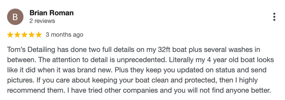 Tom's Detailing is a Professional Boat Detailing Company in Sarasota that focuses on High Quality and always Delivers on its Promises
